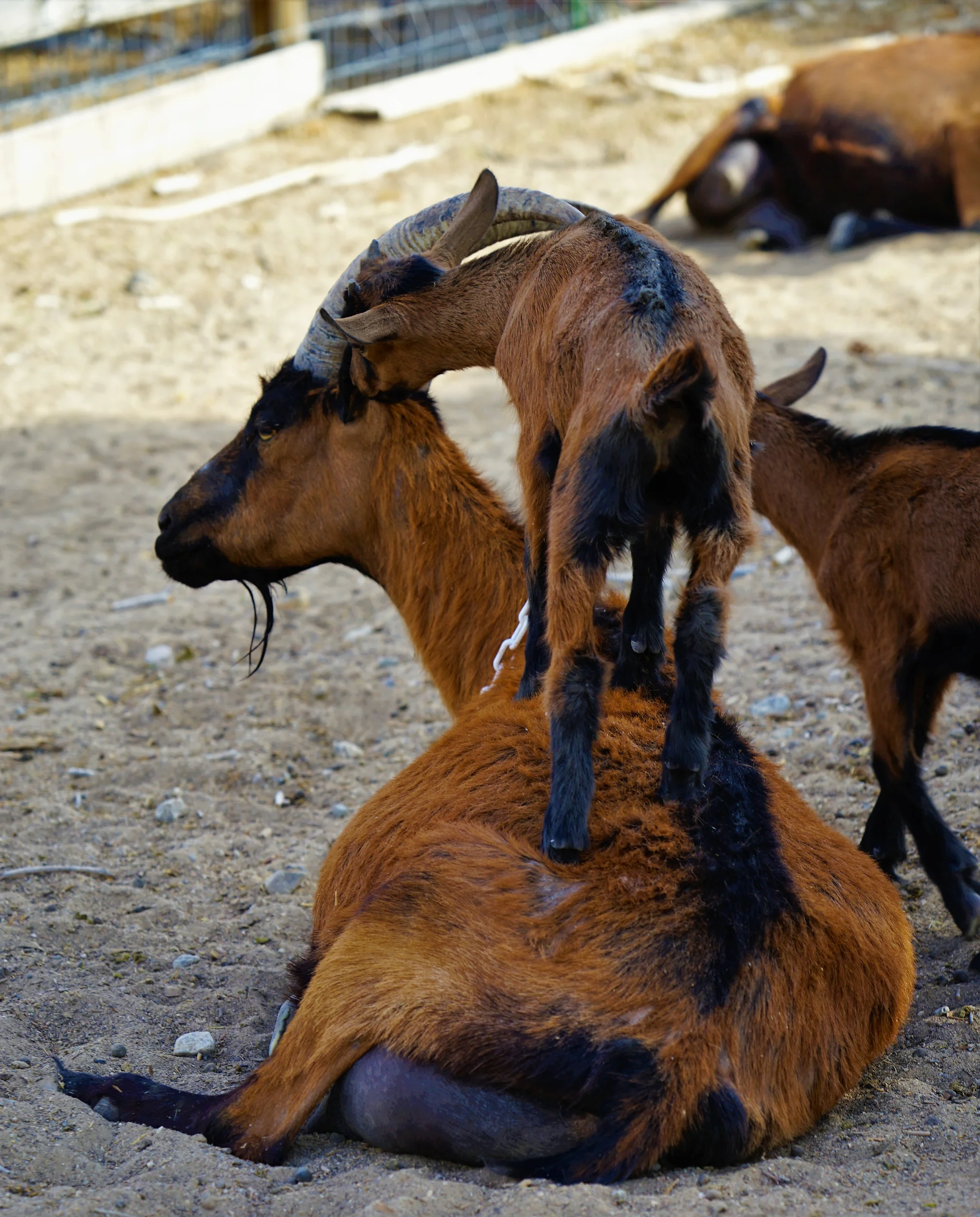 Why are some of our goats horned, and some de-horned? Most goats are born with horn buds, and a relatively painless procedure can be used to burn the horn buds and male scent glands off a baby goat before they sprout into horns. To debud a baby goat is completely a matter of preference. Personally, we like the horns and think they are beautiful, but you do have to be careful around them. The horns have a blood supply and do not shed annually like elk horns, but are instead natural radiators that keep the goat cool in hot weather.